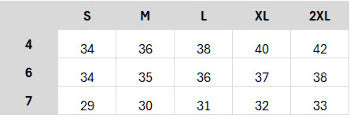 In this table you will find the size specifications of this garment in centimeters.