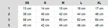 Um die richtige Größe für dich zu wählen, empfehlen wir einen direkten Vergleich mit einem gutsitzenden Teil von dir und den tabellarisch aufgelisteten Größenangaben.