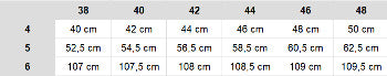 En esta tabla encontrarás las especificaciones de las tallas de esta prenda en centímetros.