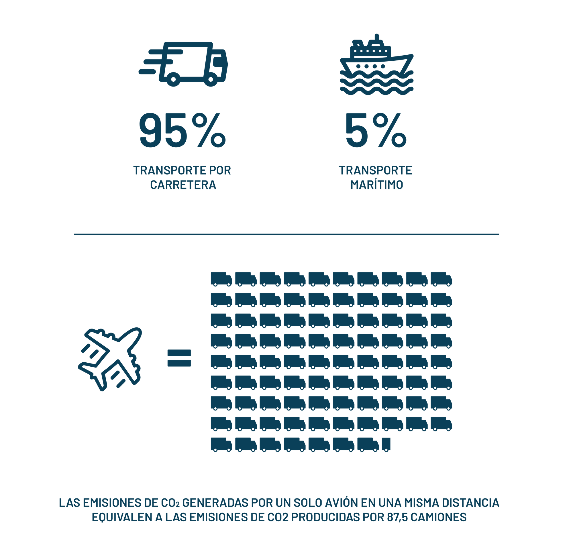 Para el transporte de nuestras mercancías, priorizamos el uso exclusivo de medios terrestres y marítimos, evitando por completo la opción más contaminante: el transporte aéreo. En la mayoría de nuestras rutas, confiamos en la eficiencia del transporte por carretera, mientras que las restantes optamos por el transporte marítimo. Además, debido a la proximidad de la mayoría de nuestras fábricas y proveedores, las distancias realizadas por estos medios son relativamente cortas.